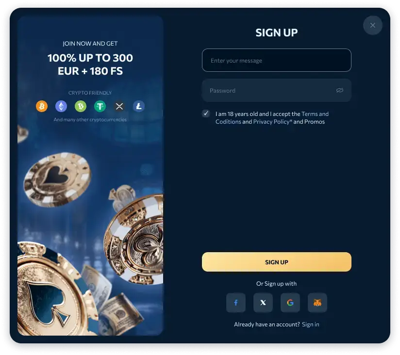 Het aanmaken van een account duurt slechts een paar minuten, en zorgvuldig invullen voorkomt de meeste vertragingen bij je eerste uitbetaling. Je kunt kiezen voor EUR/GBP of storten met grote crypto’s via CoinsPaid; zorg er in beide gevallen voor dat je profielgegevens overeenkomen met je documenten om KYC-problemen later te voorkomen.